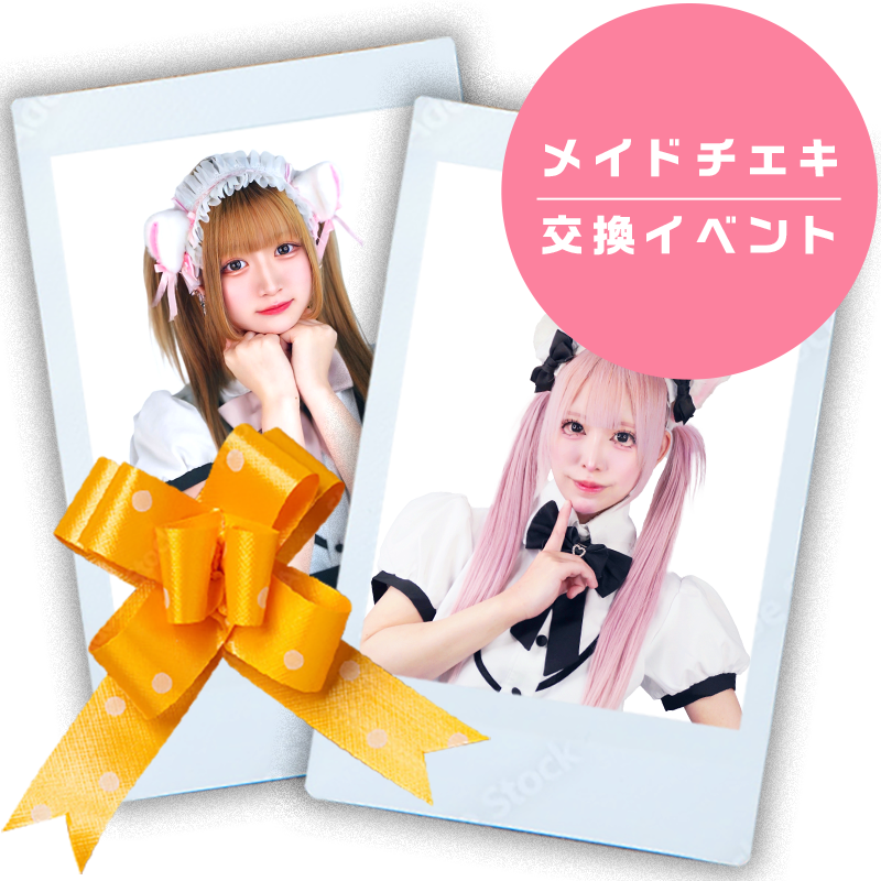 メイドちゃんとチェキ撮影ができます。チェキフィルムとメイドちゃんチェキの交換イベントも開催!チェキフィルム10パックでメイドちゃんチェキ1枚、20パックでメイドちゃんチェキ2枚と交換できます。